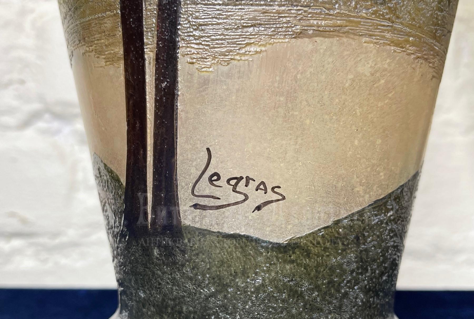Стекольное производство Легра (Legras & Cie) было организовано Огюстом-Жаном-Франсуа Легра в 1864 г. на базе уже действующего производства в Сен-Дени (сейчас пригород Парижа). Сам Огюст Легра был большим поклонником нового направления в развитии художественного стекла, автором которого был Эмиль Галле. С конца XIX века Легра начали производить стекло в стиле Модерн (Art Nouveau). Из изделий этого времени наибольший интерес представляют вазы из многослойного стекла с травленым рисунком и декорированные эмалью. Они выдувались из нескольких слоев непрозрачного, бежево-розового стекла, на внешнем слое которого с помощью плавиковой кислоты вытравливался рисунок из растений (плюща, ирисов и т.д.) или пейзаж. На последующих стадиях этот рисунок покрывался эмалью (зеленой – для листьев, рубиновой (чаще всего) – для фруктов и цветов) и остекловывался в печи. В 1909 г. Огюст Легра отошел от дел, и производство перешло под руководство его сына Шарля. Среди наиболее часто встречающихся изделий начала XX века можно назвать стекло, рисунки на котором выполнены травлением, часто на прозрачном фоне с "морозным узором", расписаны эмалью и иногда украшены золочением. Прекрасный антикварный подарок или пополнение коллекции старинного стекла в стиле Модерн. Цена: 130000 руб. |