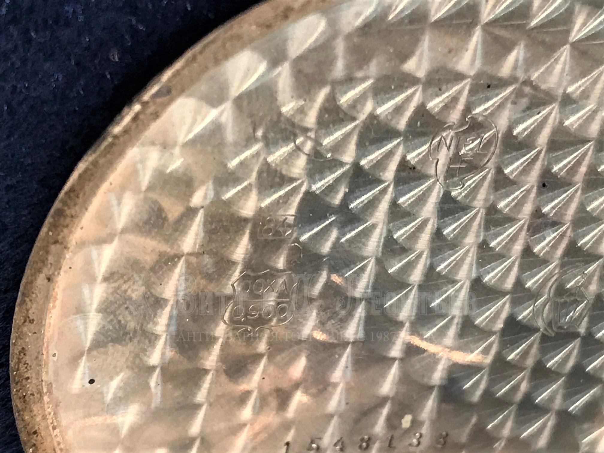 Матовый золоченый циферблат с арабскими золотыми цифрами, золотые стрелки типа Бреге, анкерный никелевый ремонтуарный механизм хорошей выделки, подписной. На ходу, корпус из серебра 900 пробы со сложным черневым декором в хорошем состоянии, бигель необычной редкой формы. Диаметр часов 47.5 мм. Хороший антикварный подарок мужчине и коллекционеру старинных русских часов. Цена: 28000 руб. |