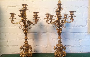 Антикварные бронзовые подсвечники в русском стиле золоченые с коньками
