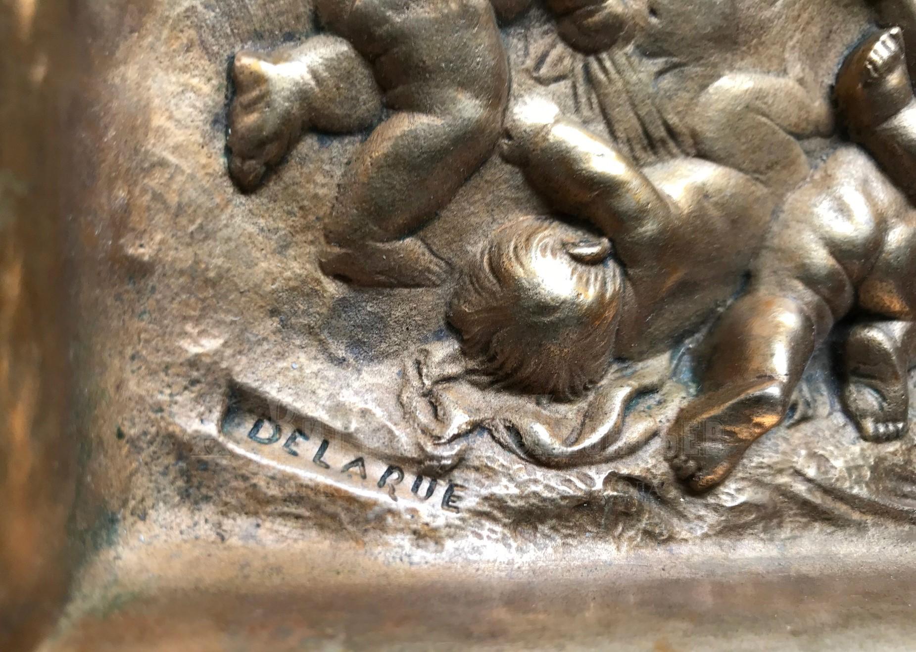 Louis-Félix Delarue, французский рисовальщик и скульптор восемнадцатого века. Старший брат Филибера-Бенуа Деларю, Луи-Феликс был учеником знаменитого Ламбера-Сигизбера Адама. Лауреат Римской премии в 1750, 7 сентября 1754 года Луи-Феликс получил патент скульптора от Академии художеств Рима. Был принят в академию Святого Луки в 1760 году. Тема путти, амуров и ангелочков была излюбленной для этого художника, исполнявшего, помимо прочего, эскизы и модели для скульптурных ваз, алтарей, каминов, надгробий и пр. Отливка выполнена в конце XIX века в заведении Братьев Тибо в Париже, основанном в конце XVIII века и одном из лучших в мире. Художественное литье Thiébaut Frères является неотъемлемой частью французской столицы - его произведения присутствуют повсюду, от огромной "Статуи Свободы" на Сене до маленького памятника Бомарше, rue Saint-Antoine... От грандиозного "Памятника Республике" на одноименной площади до сдержанного памятника Парментеру на фармацевтическом факультете Парижа... От великолепного фонтана Сен-Мишеля до очаровательного фонтана Водонапорного замка на площади Феликса-Эбуэ. Марка литейщиков в правом верхнем углу барельефа. Антикварный подарок человеку со вкусом. Цена: Нет в наличии |