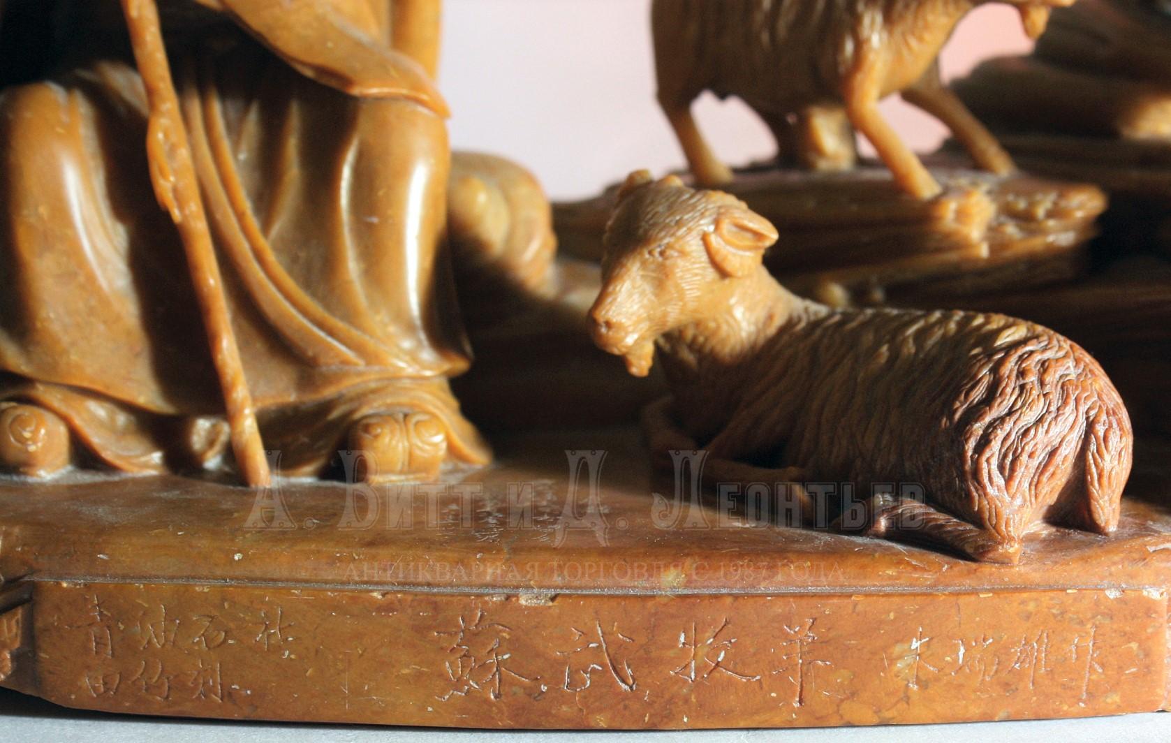 Китайская антикварная скульптура, вырезанная из мыльного камня. Тонкая авторская работа. Размер 21 см. на 9 см. на 11.5. Информация дополняется.